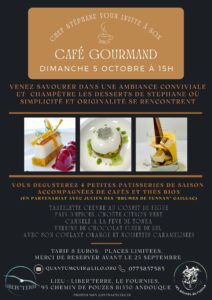 Vous dégusterez 4 petites patisseries de saison accompagnés de cafés et thés bios (en partenariat avec Julien des « Brumes de Yunnan » à Gaillac: